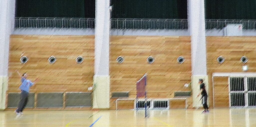 コート奥へ追い込まれたときのショットです。基本的に相手に対して前向きにショットを打ちますが、逆をつかれたり、ショットが鋭くコート後ろまで戻り切れない等で前向きの状態で打てない場合、後ろ向きの状態からシャトルを打つことになります。これはフォワ側もバック側も両パターンありますが、相手側からする戻り切れず後ろ向きの状態でショットを打たせられるシーンとなれば、追い込んだと思いますので、ネット前まで詰めてくるケースが多いです。そのため、ネット前に返すにしてもネットにきわどいショットを打つ必要がありますし、ネット前に詰めてこられないようにけん制の意味も込めて、コート奥へ返すことができるようになる必要があります。右利き選手の場合、右足を奥に踏み込み、ラケットをしっかりと振り切り、右奥から相手コートの4角(コート右前、左前の場合はドロップのようなショット、コート右奥、左奥の場合はクリアのショット)を狙ってシャトルをコントロールします。場合によって、打点を高めにとらえられる場合はスマッシュのように角度を付け攻撃的なショットを打つことも可能です。打点を高くとらえることで打つ方向や打つ場所の選択肢が増え、打点が低くなればなるほどコート奥へのショットまたはスマッシュのような鋭い角度を付けてショットが難しくなるため、相手選手からするれば低い打点になりそうな場合はネット前へ詰めてくる(もしくはコートの前の方にポジショニングする)ことになります。ただ逆を言えば、その裏をかいたショットを打つことさえできれば好機になるということです。初心者や初級の方にとっては難しいショットの一つになりますが、教室 ひろ比較の岐阜・名古屋バドミントン教室では、フォアハンドとバックハンドについて、打点の高さによる打ち分け方法や手首や腕の振り方をお教えしたうえで、まずは確実にネット前に落とせるようなショットを打てるような練習を行っていきます。